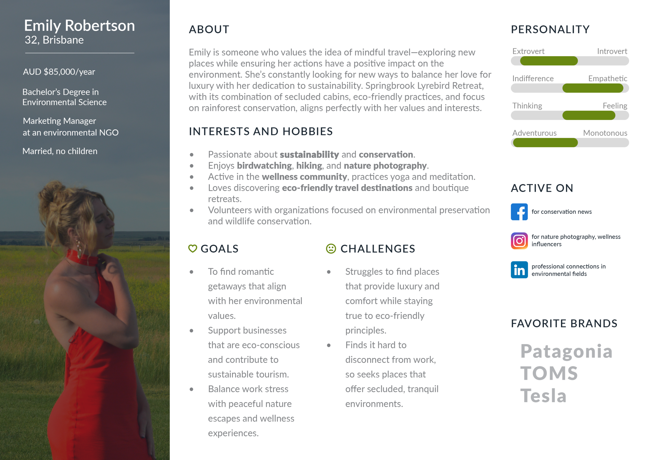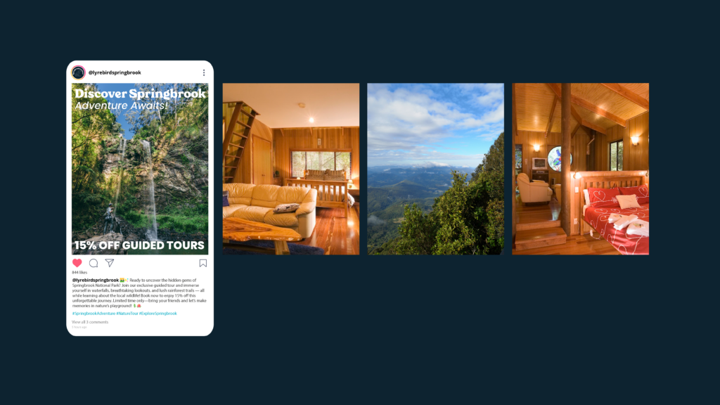 This academic project focused on developing a social media engagement plan for Springbrook Lyrebird Retreat, an eco-friendly accommodation located in Springbrook National Park. The goal was to strengthen the brand’s digital presence and attract eco-conscious travellers through strategic Instagram content.